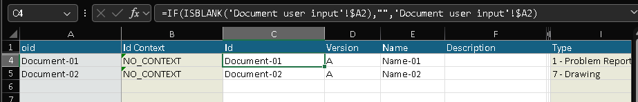 Id- this must be a reference to an oid cell in a reference data sheetName- this is a friendly name that the user sees in the data validation lists