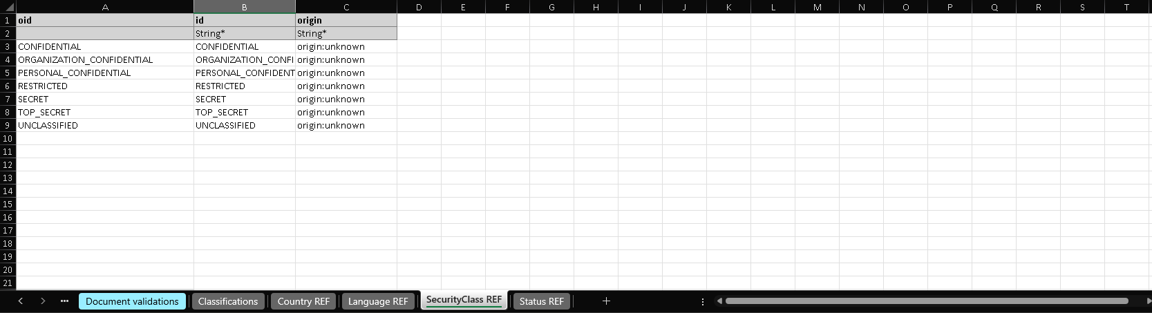 This table is generated by the by the excel template generator and it is for information only (not needed by the mapper).